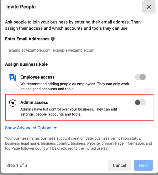 Please make sure to choose Admin as this will give us the ability to add Noticestry as an Agency, and to make any necessary changes.
