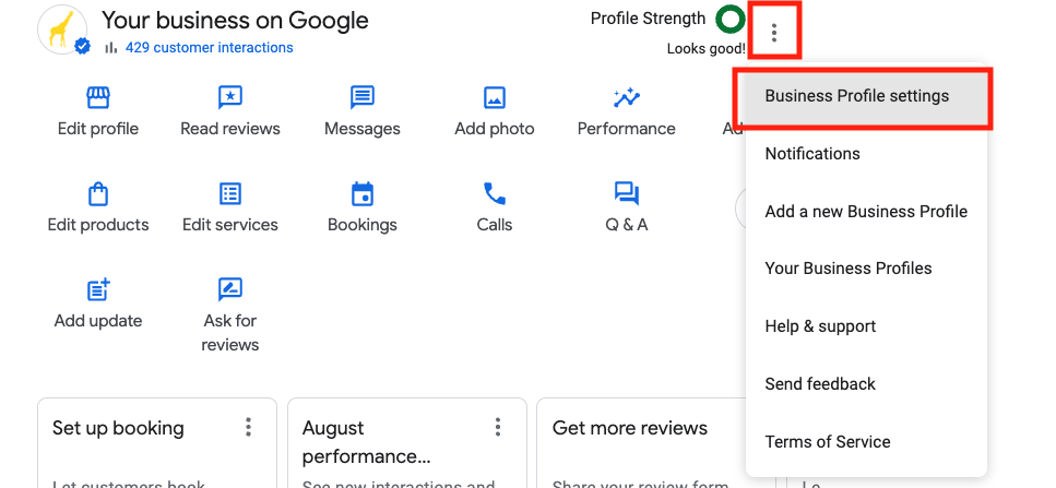 Choose the 3 dots on the right of "Profile Strength" then "Business Profile Settings"
